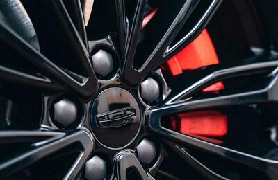 - Легкосплавные колесные диски R19 с тормозными суппортами красного цвета